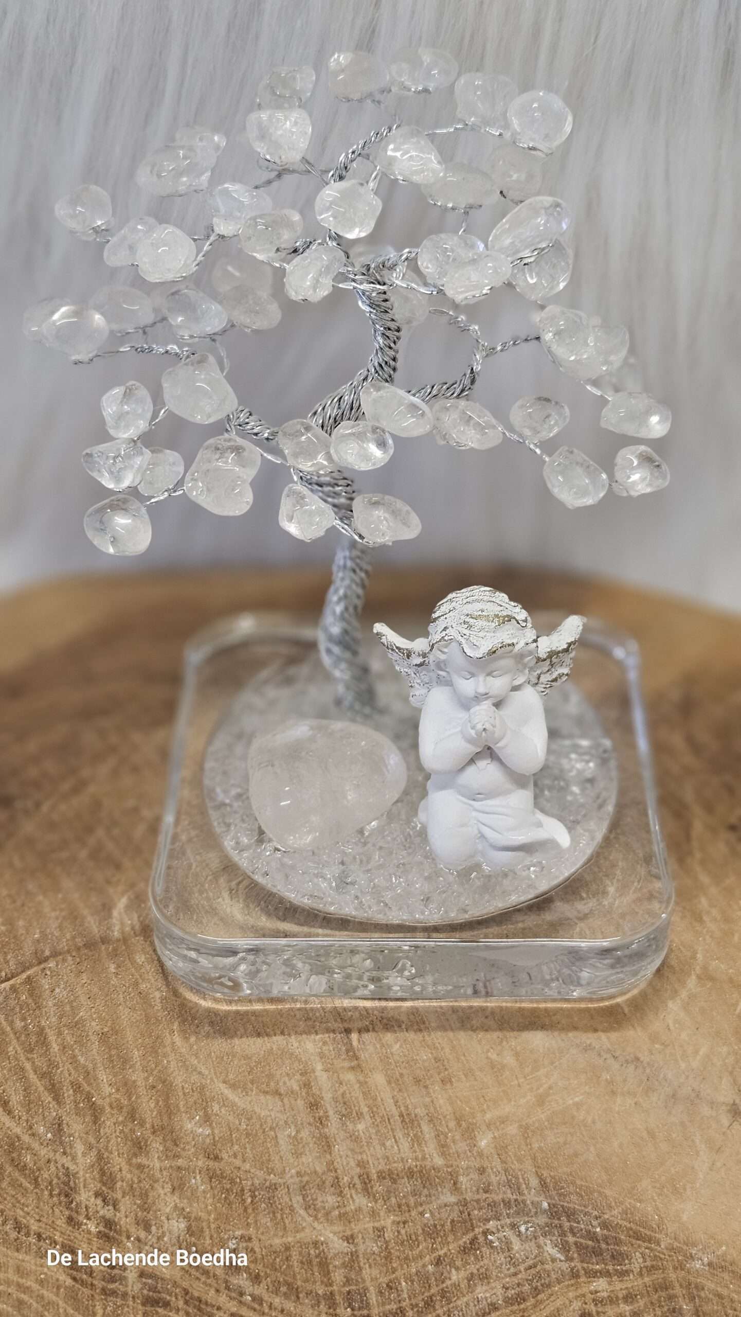 Bergkristal met bergkristal (glazen) voet en engel